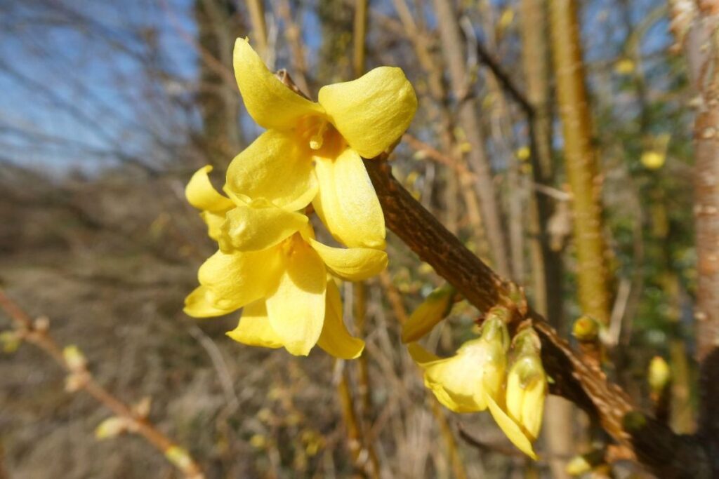 In my backyard, I have 3 forsythia bushes. They’ve struggled the past few years. In their excitement to bloom, they can get going a bit too quickly.